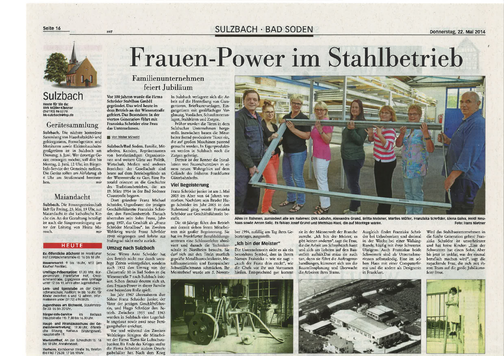 Artikel aus der Taunuszeitung bzw dem Höchster Kreisblatt vom 22.05.2014.
