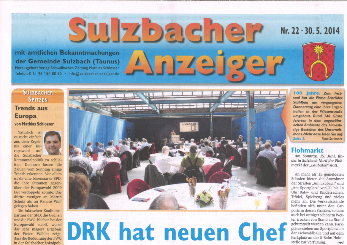 Ausgabe 22 des Sulzbacher Anzeigers vom 30.5.2014.